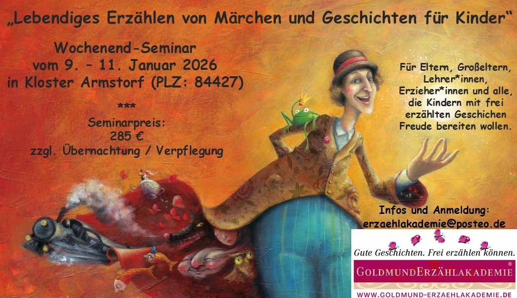 09. - 11. Januar: "Kinderleicht erzählen - Kindern leicht erzählen!" - Wochenendseminar mit Norbert Kober in Kloster Armstorf (PLZ: 84427), Seminar und Übernachtung im Kloster.